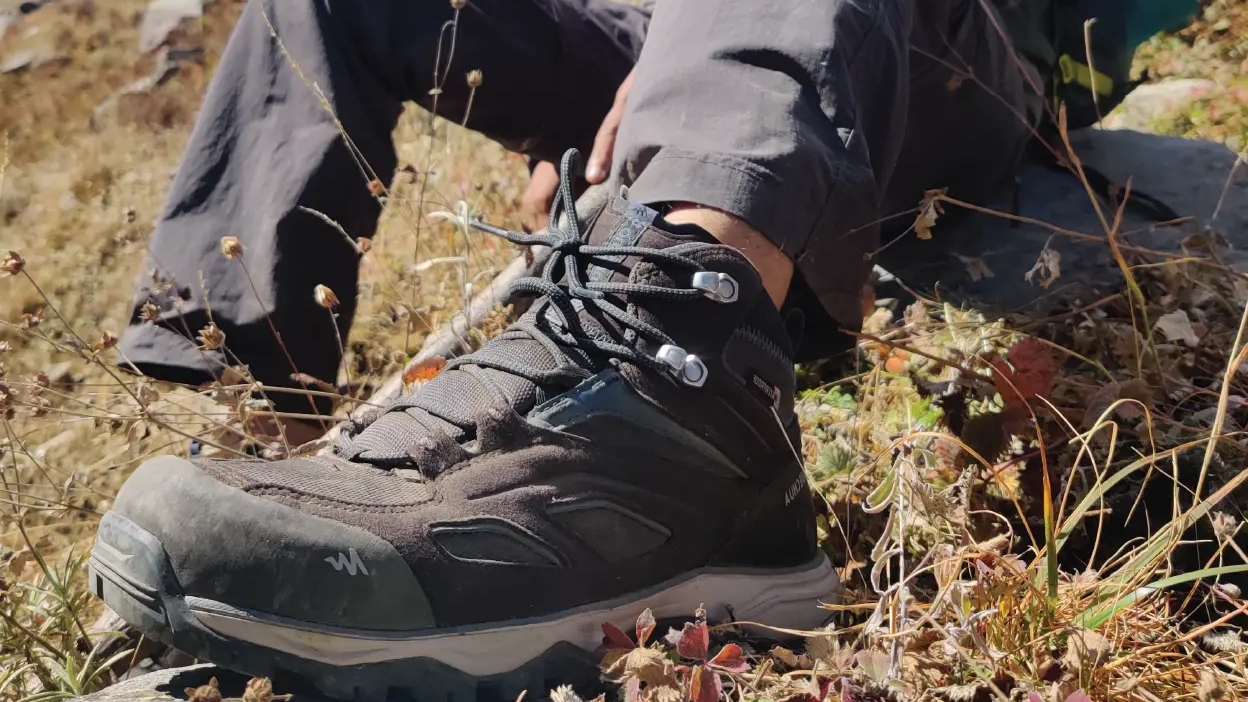 Dans le laboratoire QUECHUA, la chaussure est immergée dans l’eau jusqu’à mi-hauteur sur un bras mécanique qui simule la marche. Cela permet de déterminer le temps et le nombre de kilomètres pendant lesquels la chaussure peut rester sèche. Nous la testons ensuite sur le terrain dans différentes conditions.