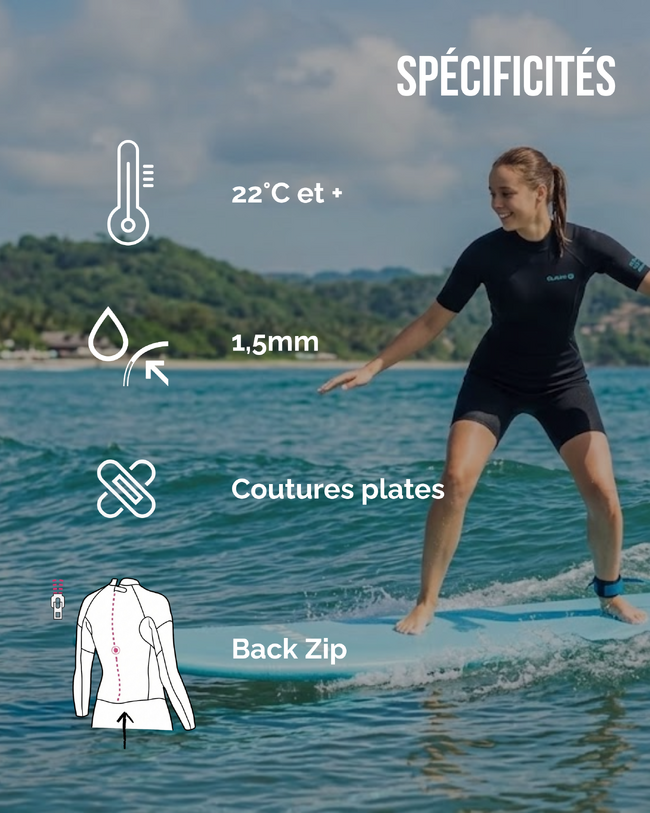 Combinaison surf shorty 100 néoprène 1,5mm femme